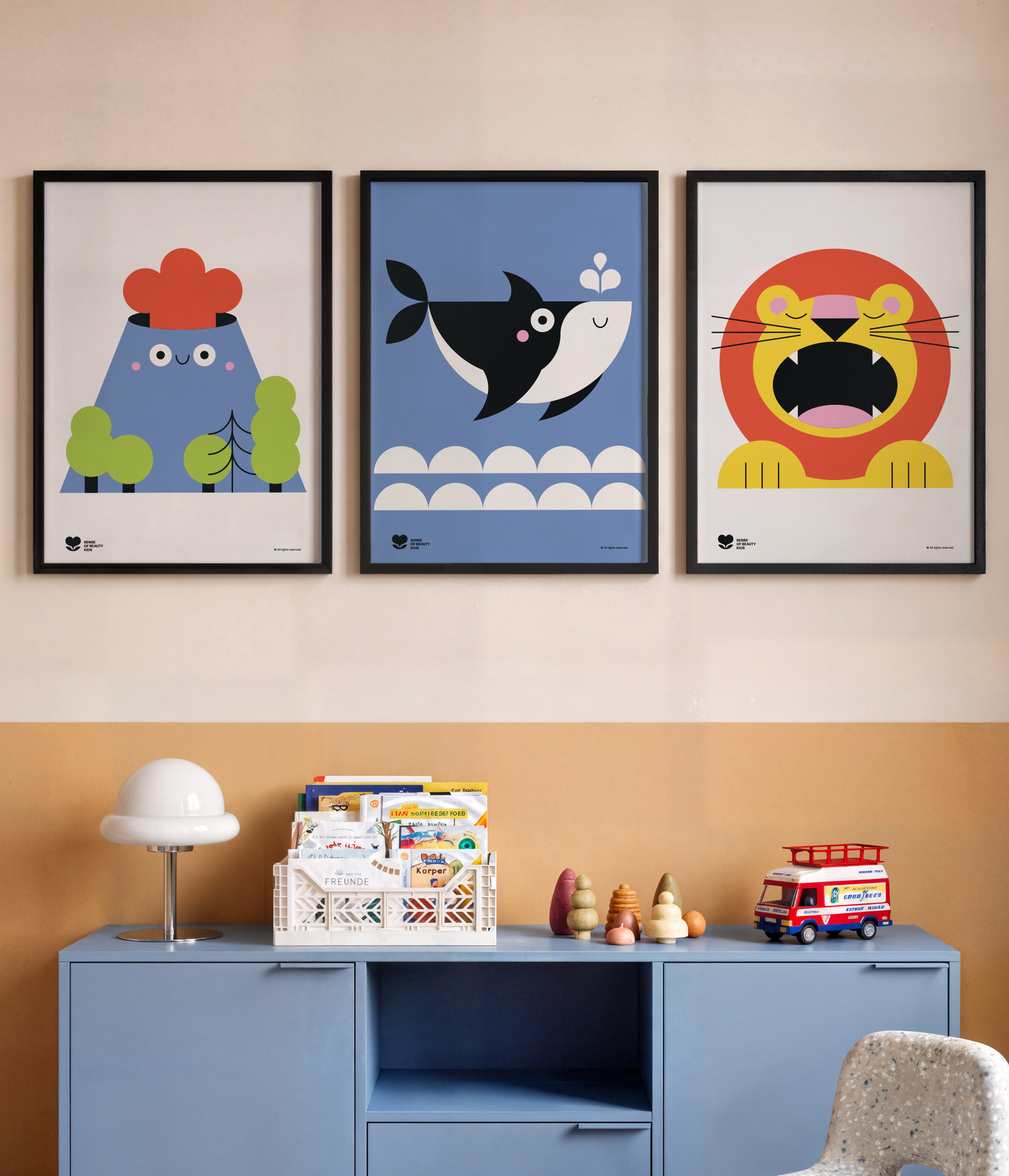 The illustrations are created in a cohesive style and look great both together and individually. The set fits easily into a child„s room or any other space, adding a colorful accent and visual rhythm without overwhelming the interior. A great gift option for children and parents who appreciate modern design and thoughtfully considered details.